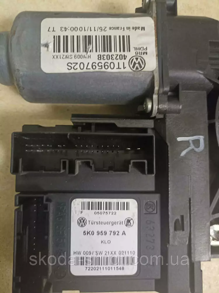 Моторчик стеклоподъемника Октавия А5 передний правый 1T0959702S, 5K0959792A блок управления
