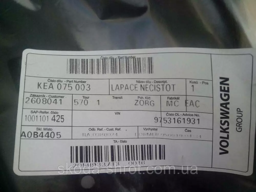 Новые оригинальные брызговики передние на Шкода Октавия Тур KEA 075 003